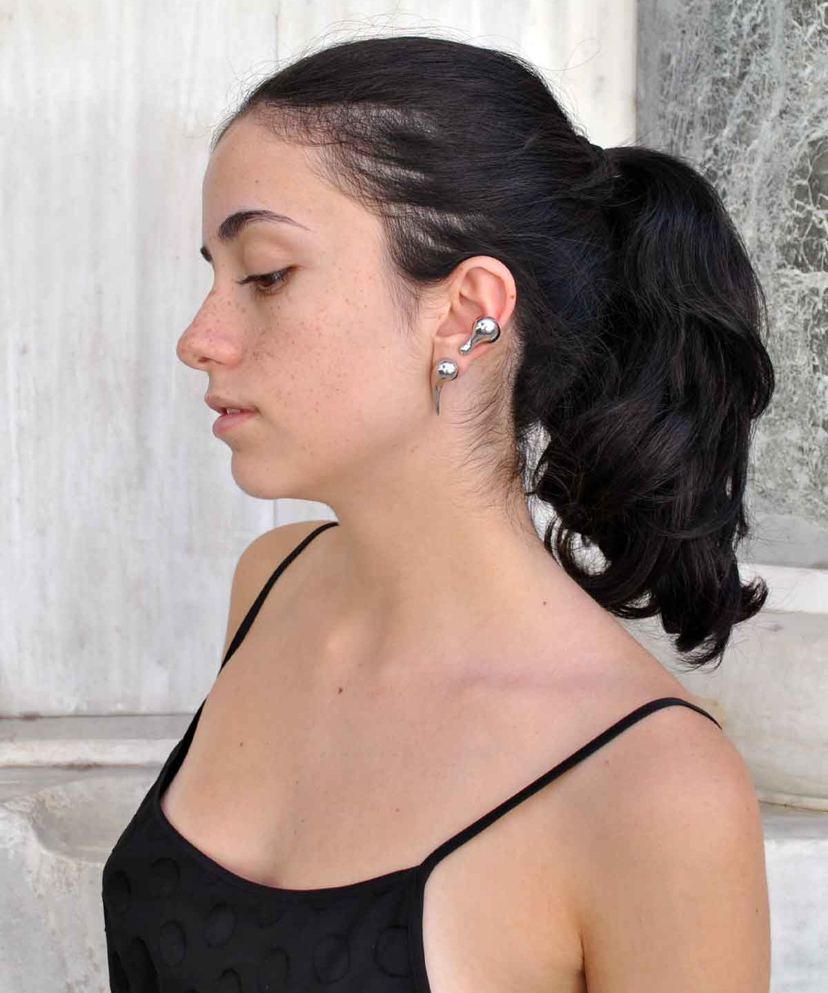 A study in movement and form, Liquid captures the essence of flowing metal. Each piece is designed with organic curves and a reflective surface that drapes and glides with ease, echoing the natural fluidity of water. Sculptural yet minimal, the collection pairs effortlessly with clean, understated looks, while its pieces can be layered and combined for a cohesive statement.