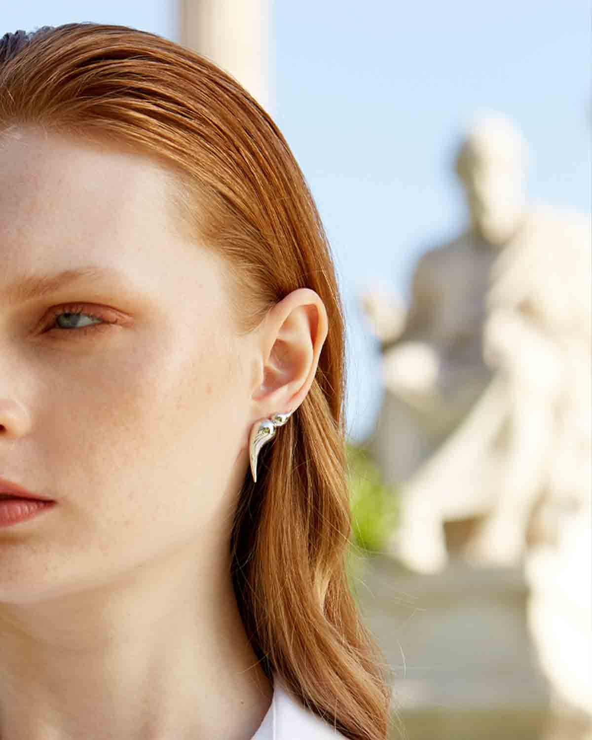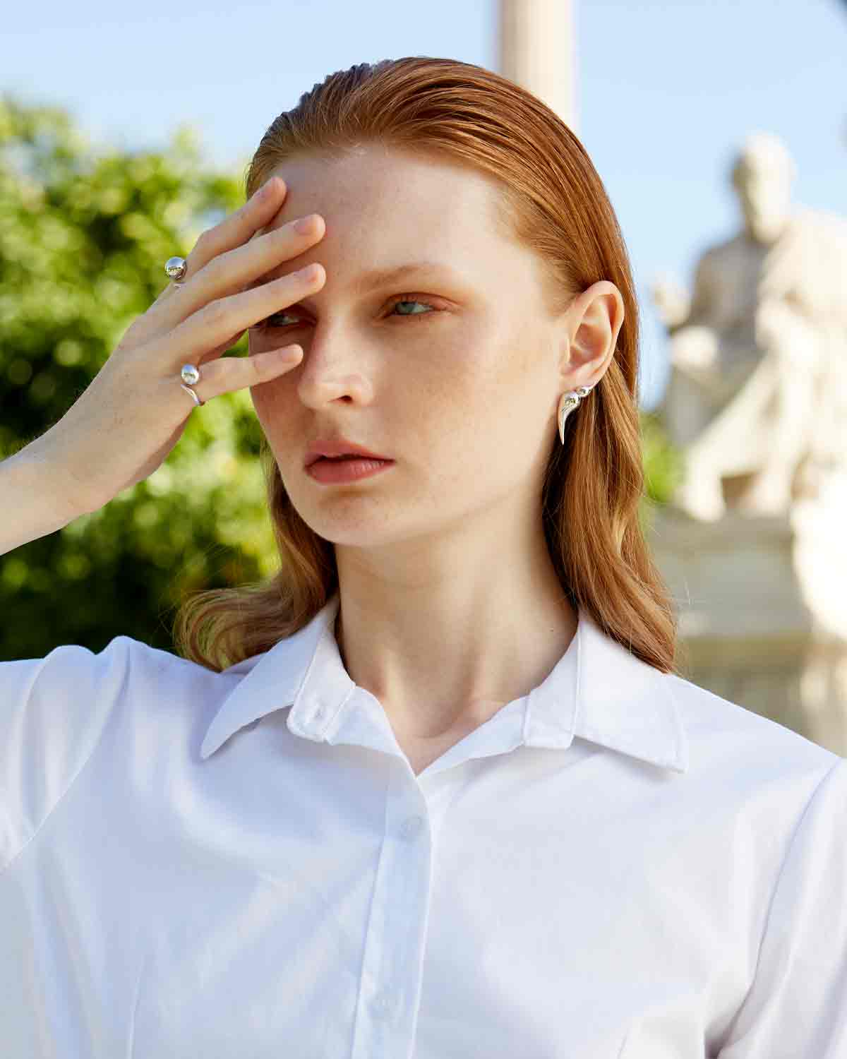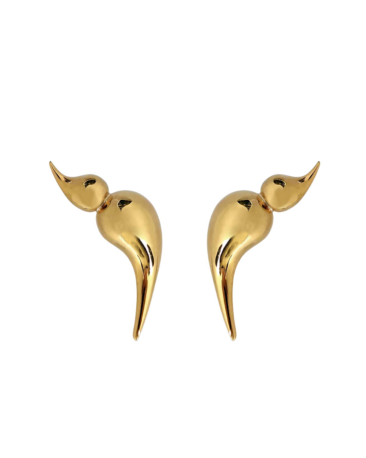 A golden duo of sculptural drops, echoing the elegance of water in motion. Perfect for day-to-night minimal looks, they can be styled with the Gold Long Drop Earrings for layered radiance.
