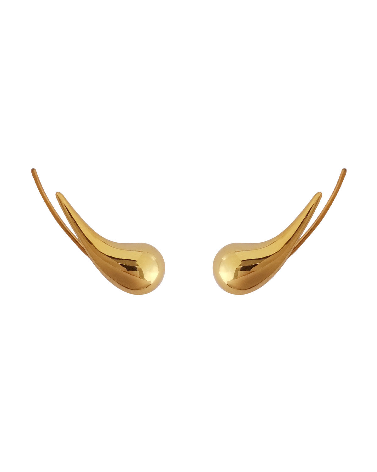 Designed to follow the contour of the ear, this sculptural gold climber creates the illusion of liquid metal flowing upward. Minimal yet eye-catching, it works beautifully with sleek hairstyles and simple outfits. Style with the Gold Drop Pendant Small with Fine Chain for a refined pairing.