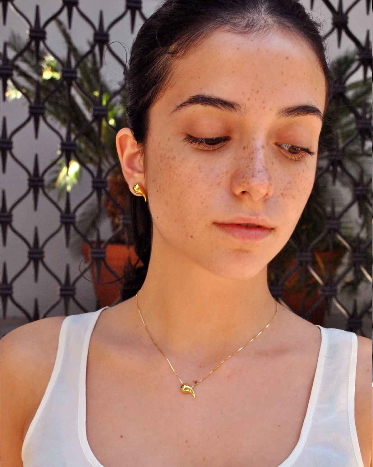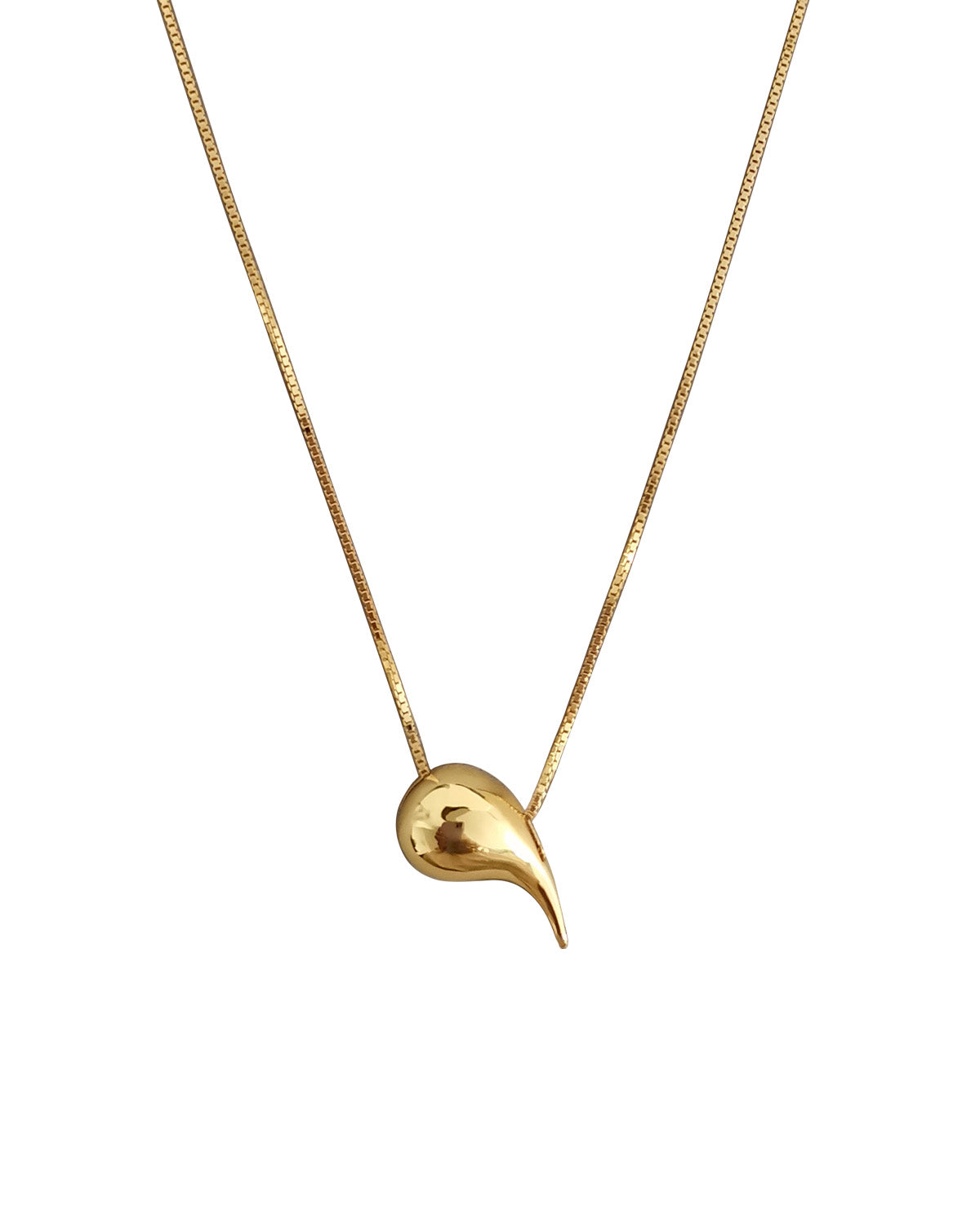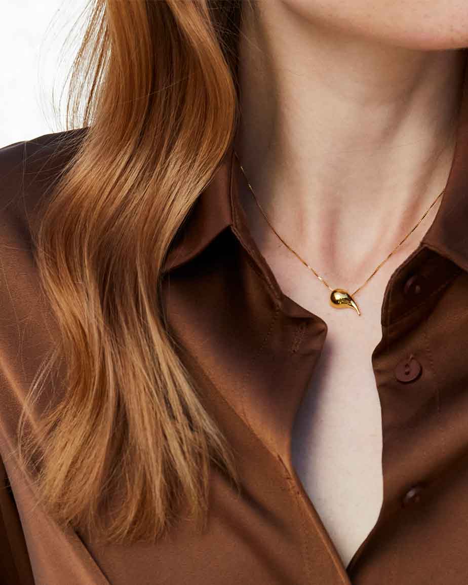 A golden drop pendant that glows with quiet elegance. Its delicate chain makes it ideal for minimal daily wear. Pair with the Gold Drop Pendant Large for layered warmth.