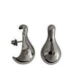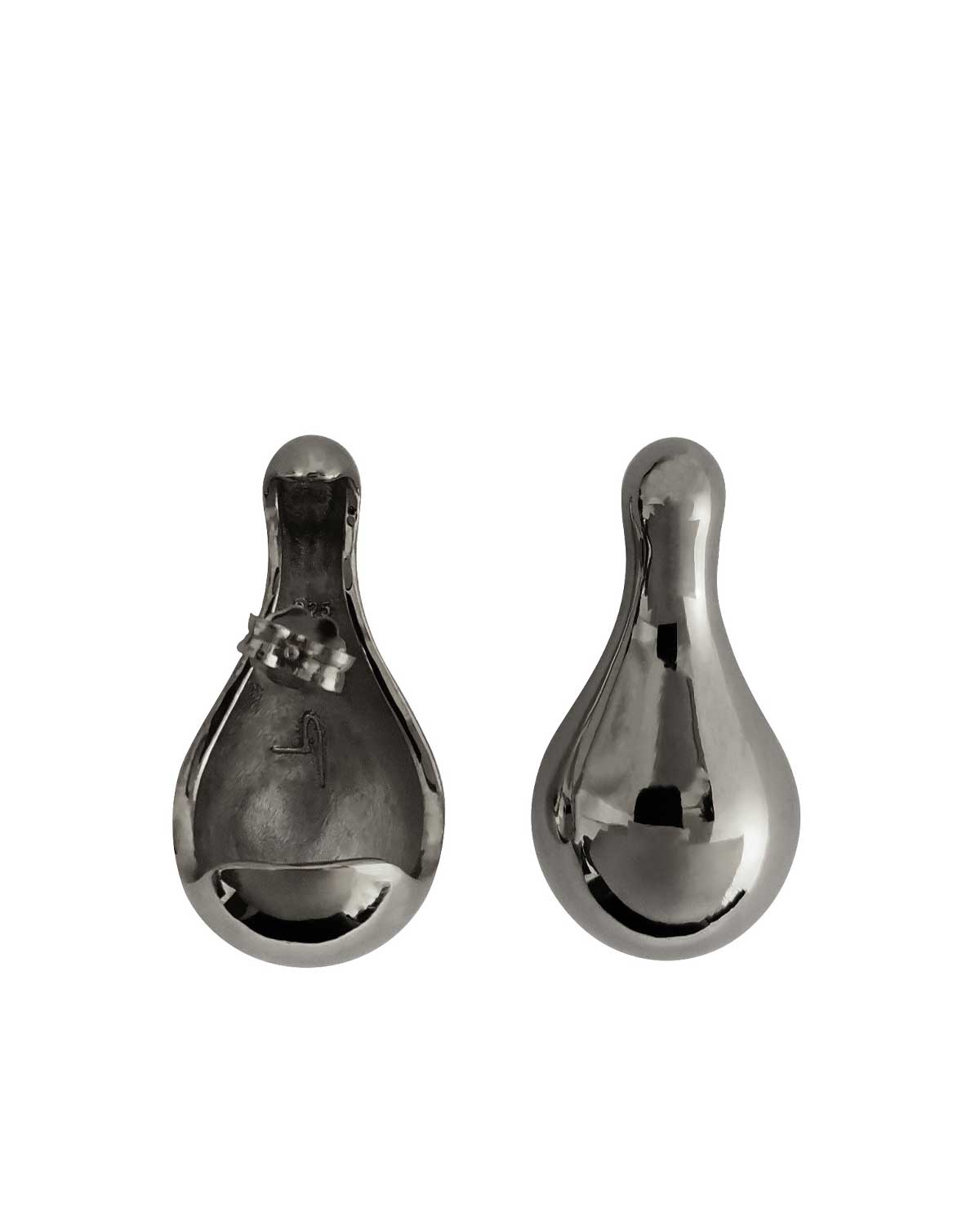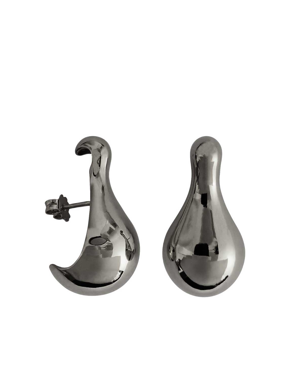 Sleek and modern, these rhodium-plated earrings trace a continuous, flowing line in sculptural form. Their reflective dark surface creates contrast and depth, perfect for minimal monochrome styling. Pair with the Silver Liquid Necklace or Bracelet for balanced intensity.