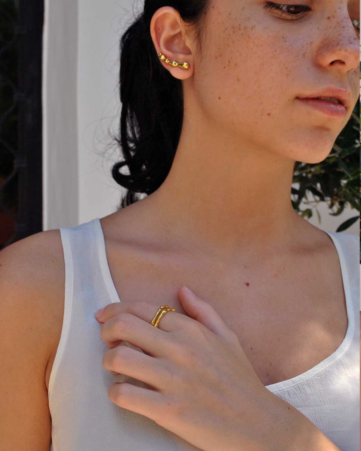 A golden flow curving upward, these climbers radiate light and elegance. Wear with the Gold Liquid Bracelet for a refined golden set.