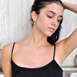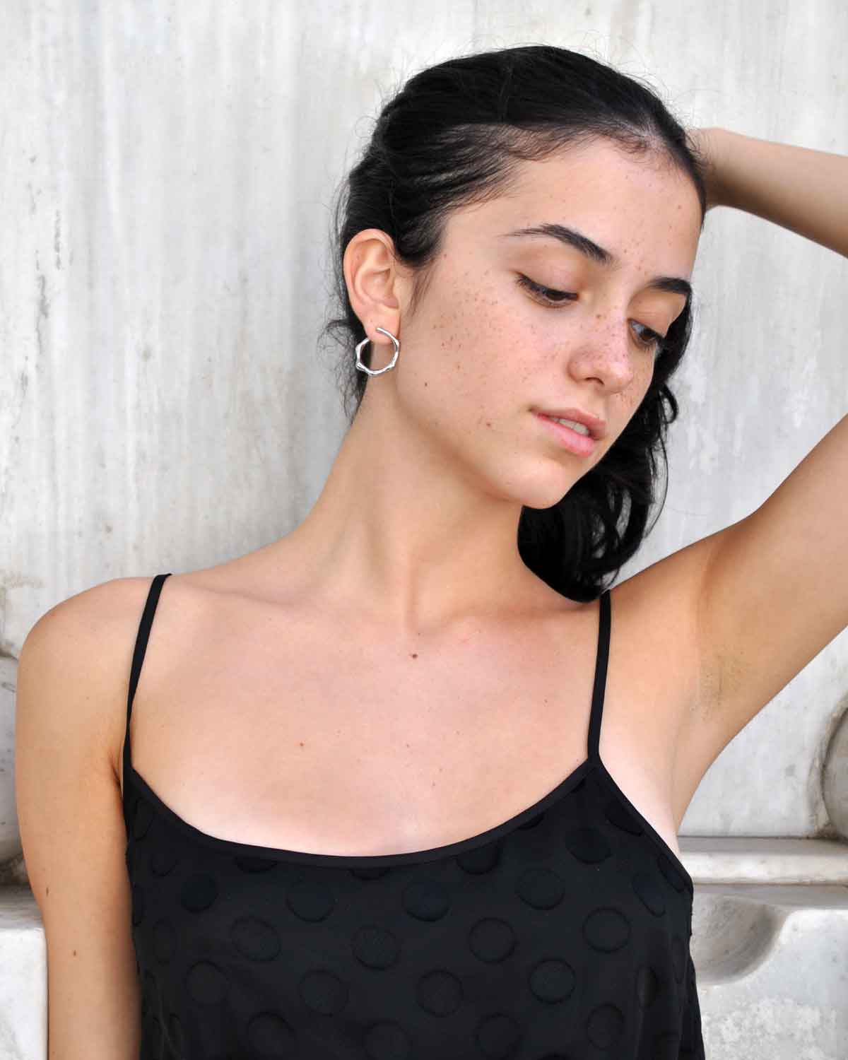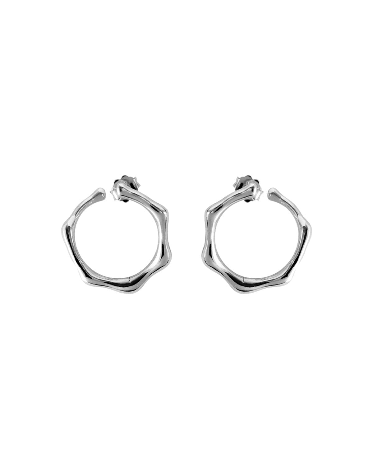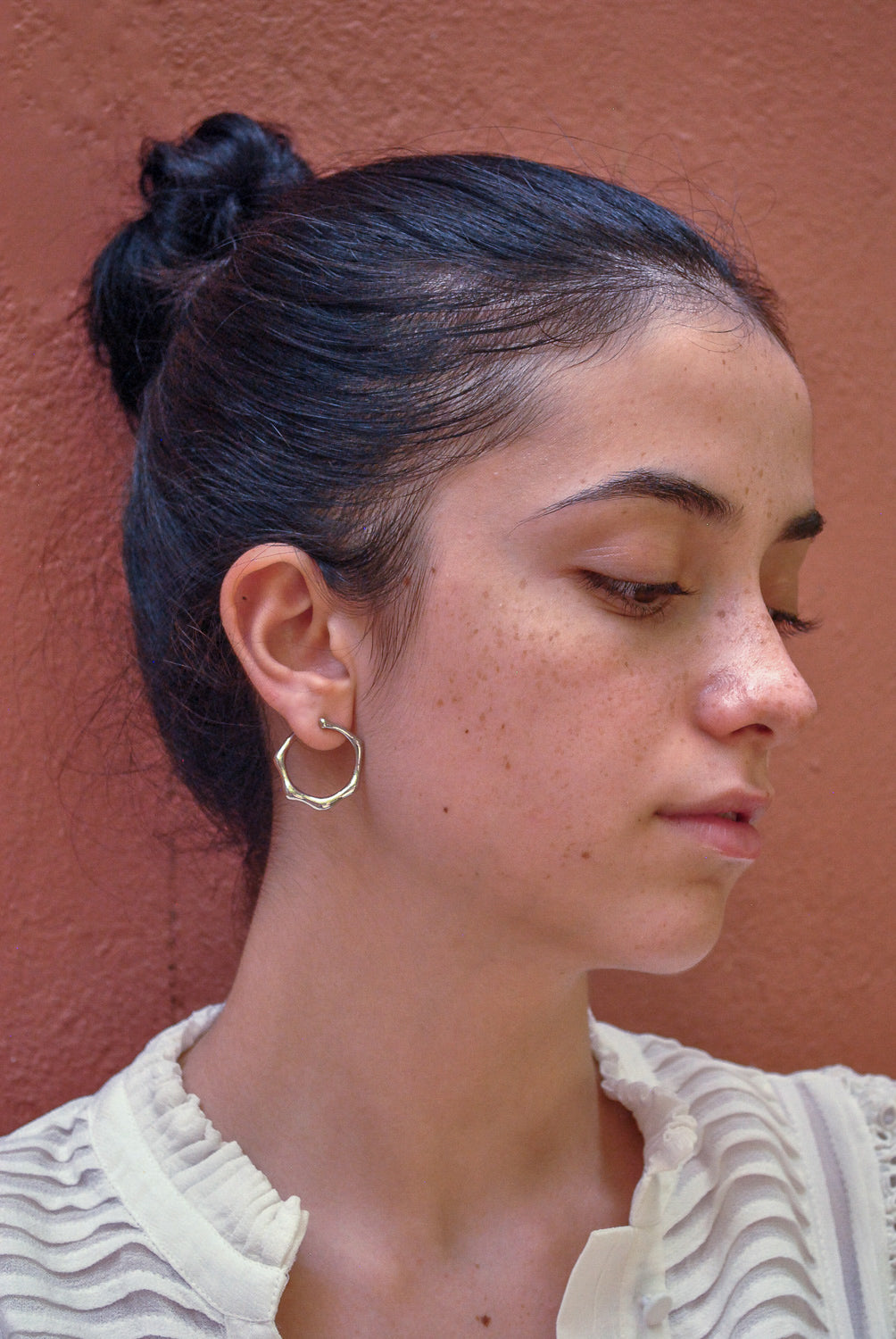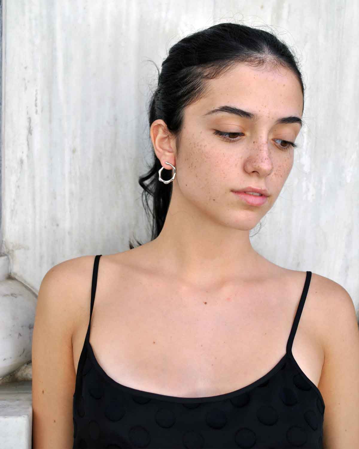 Classic hoops reimagined in fluid form. Their sculptural curves catch the light in motion, balancing minimalism with elegance. Style with the Silver Liquid Bracelet for a polished duo, or with the Silver Liquid Necklace for layered fluidity.