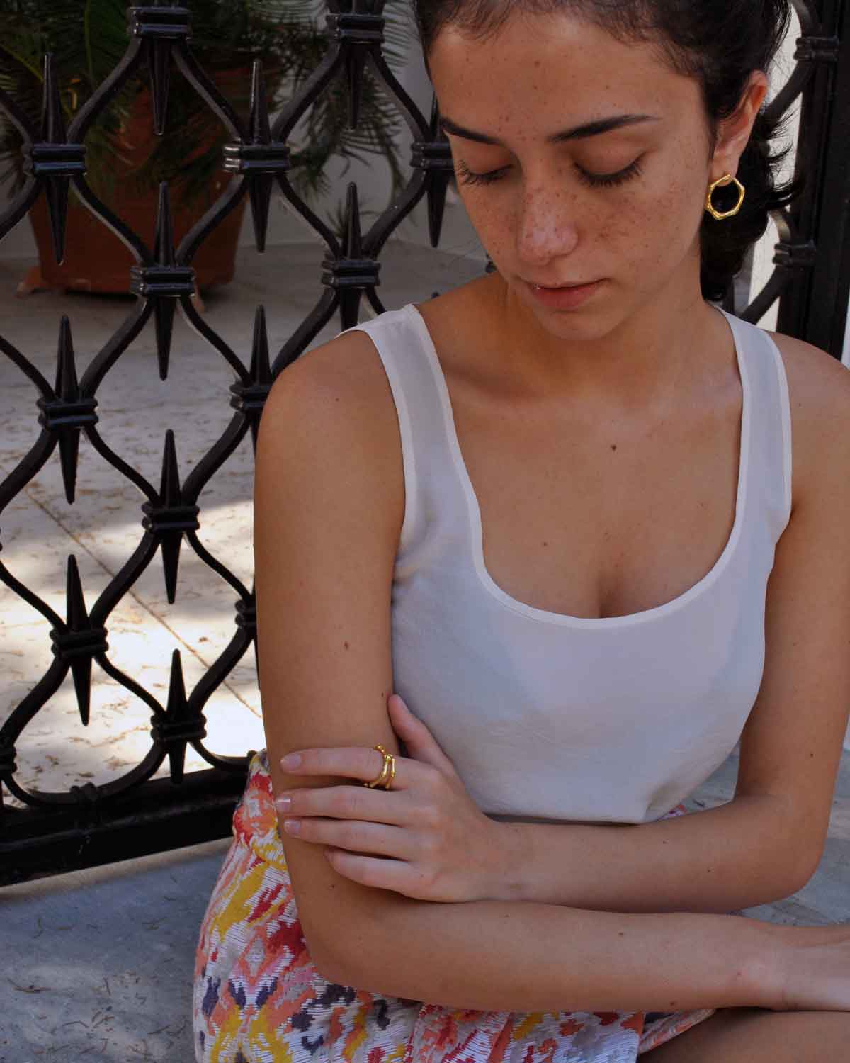 Radiant and sculptural, this thick golden band embodies confidence and warmth. Pair with the Gold Liquid Ring Thin for a luminous duo.Material: Silver 925Finishing: Shiny gold platedFinger Size: Adjustable between 54–56Dimensions: Width 0.2-0.4cm